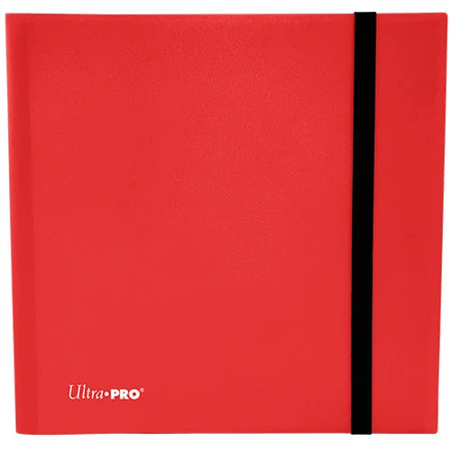 12-pocket Apple Red PRO-Binder with embossed middle black web material gives cards a classic framed look. Sideloading pocket design to prevent cards from easily falling out. Elastic strap holds the binder shut when not in use. All materials are made from archival-safe, acid-free non-PVC material. Holds 480 cards in Ultra PRO Deck Protector sleeves.