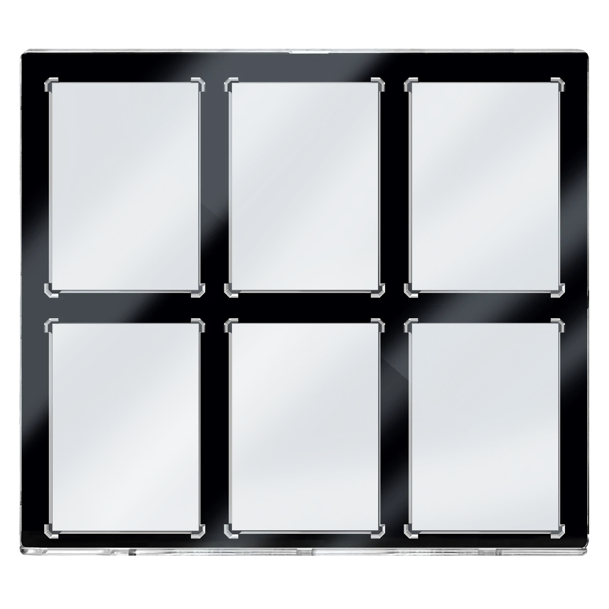 The 6-Card Black Border ONE-TOUCH display features a black border to perfectly frame your cards. Designed as the final destination for your collectible cards, our two-piece ONE-TOUCH holders are uniquely designed with a slide-in hinge and magnetic closure so you’ll never have to use a screwdriver again. The holder provides UV-resistant, no-PVC, and acid-free protection to ensure your valuable hit retains its condition while under the display. Our ONE-TOUCH holders are ideal for presenting prized and super rare gaming cards as well. Has sawtooth hangers on the top and on the side of the display to allow displaying both vertical and horizontal format cards. This model can hold six standard cards (2-1/2″ x 3-1/2″) up to 35pt in thickness.