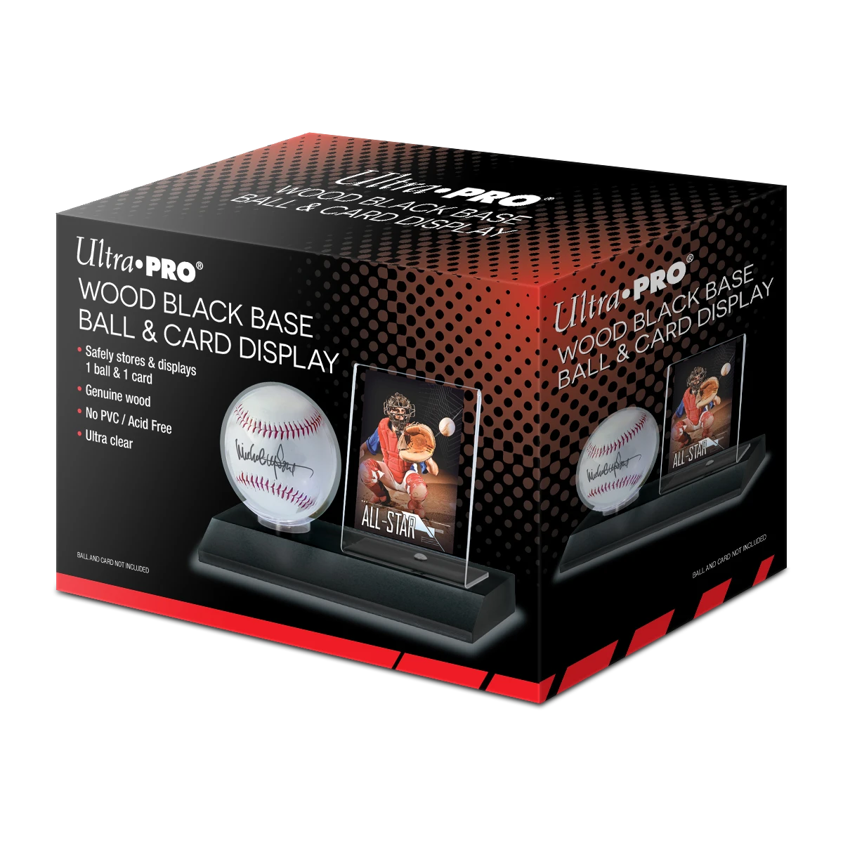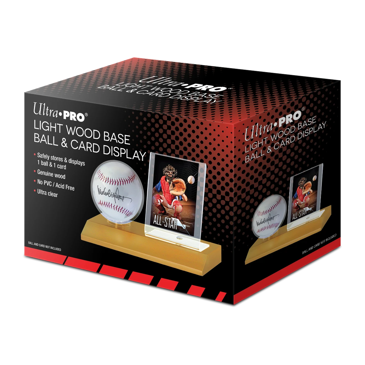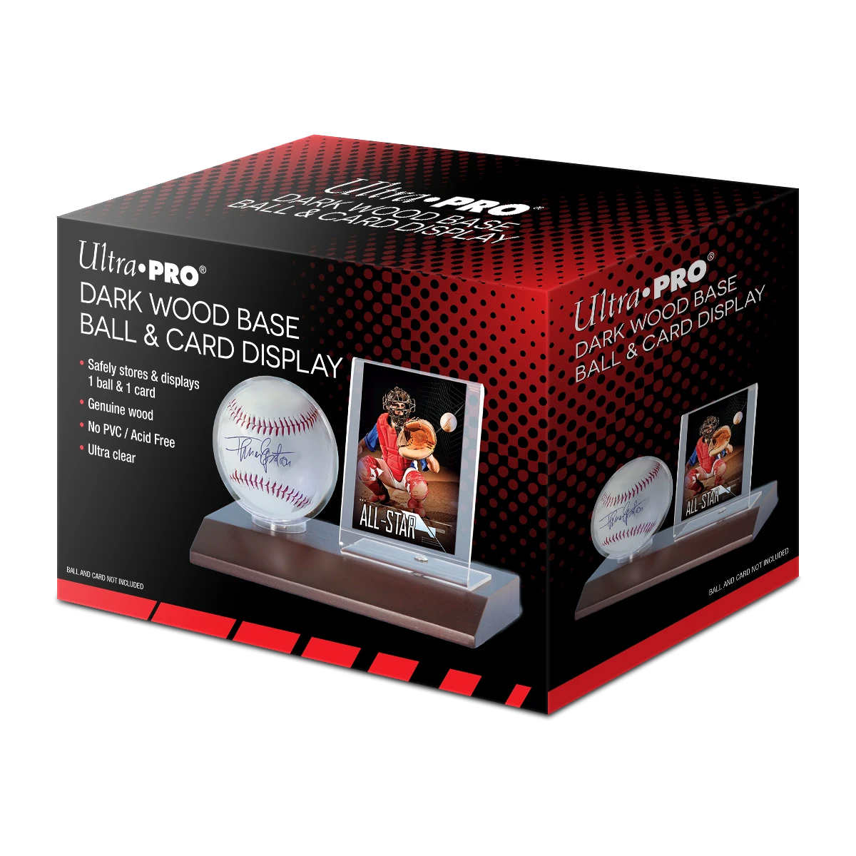 Protect your valuable memorabilia with Ultra PRO’s baseball and cardholder. The baseball is fully protected and enclosed in a round case to prevent contact with dirt and dust, while your trading card is held in a card stand. Both holders are installed on a sleek wood base and are sure to be a welcome addition to any collector’s personal collection. The baseball compartment is sized to fit a standard baseball, while the cardholder is size to fit a standard trading card measuring 2-1/2″ X 3-1/2″ in vertical format. Baseball and card not included.