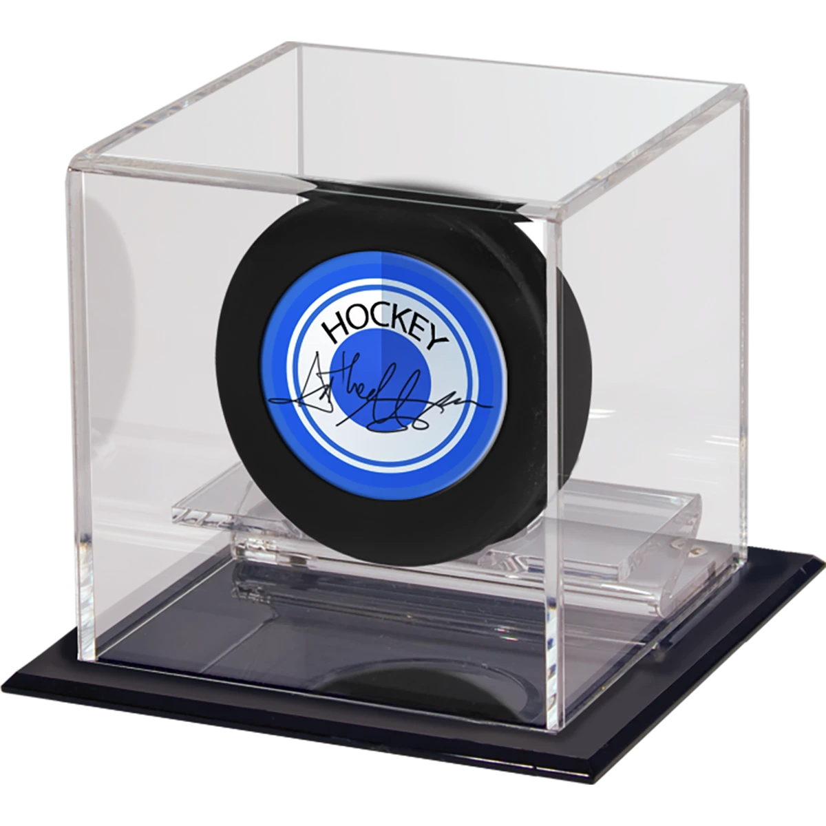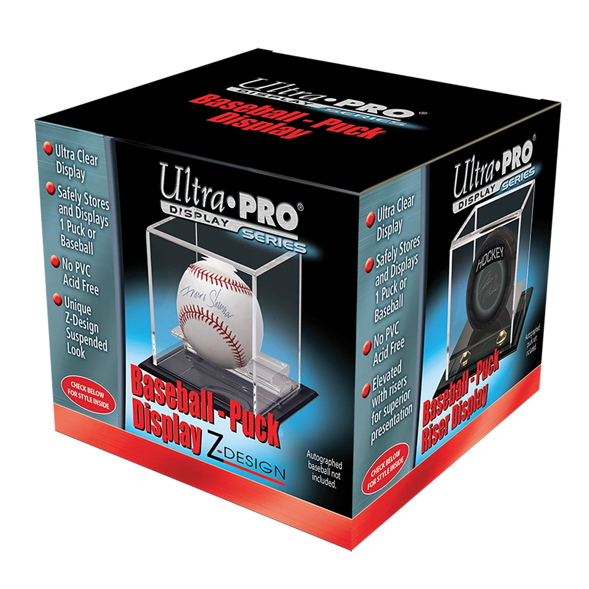 Proudly show off your prized memorabilia with this Z-Design display case, made with an ultra-clear acrylic top ideal for displaying a memorabilia baseball or puck. The bottom “Z” holder creates a ‘floating’ look for your display item. “Z” holder can be unscrewed to turn the holder into a toy, figurine, or POP vinyl figure display case. The black base plate creates a minimalist look and provides space for labels or engraved nameplates. Inside dimension measures 4 inches in height, 3.75 inches in width and depth.