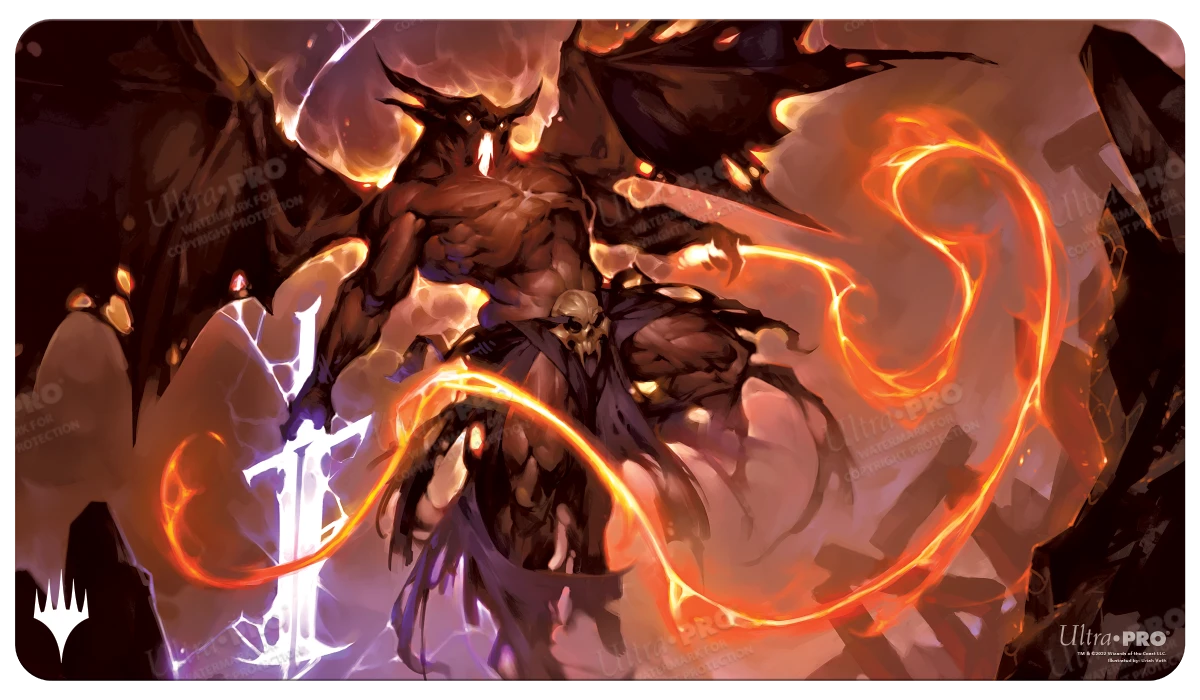 Playmats feature popular Magic: The Gathering artwork of Balor by Uriah Voth. Made with a soft fabric top to reduce damage to cards during play and a non-slip rubber backing to keep the playmat from shifting during use, playmats enhance the gameplay experience. With dimensions of approximately 24 in. x 13.5 in., a playmat also makes an excellent oversize mousepad for home or office.