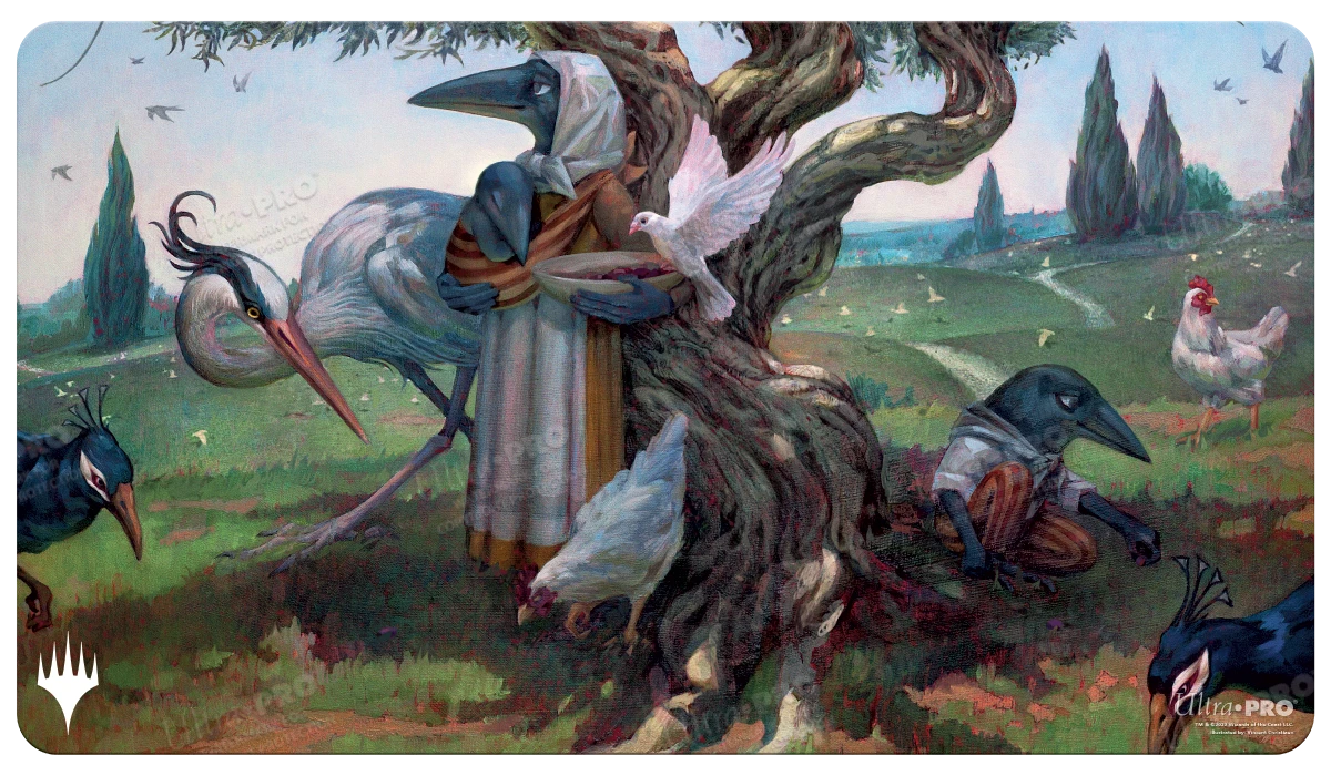 Playmats feature popular Magic: The Gathering artwork of Kindred Discovery by Vincent Christiaen. Made with a soft fabric top to reduce damage to cards during play and a non-slip rubber backing to keep the playmat from shifting during use, playmats enhance the gameplay experience. With dimensions of approximately 24 in. x 13.5 in., a playmat also makes an excellent oversize mousepad for home or office.