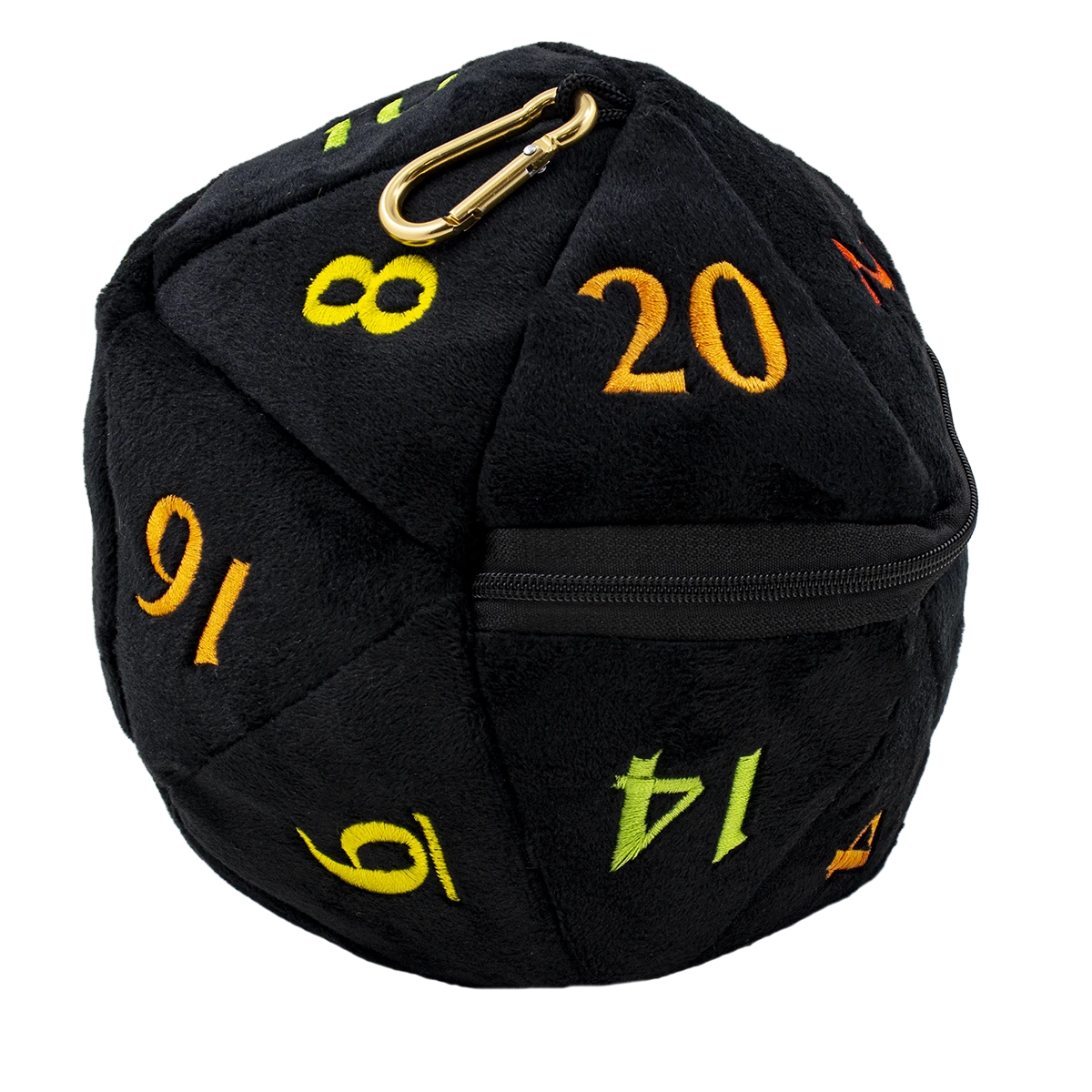 Need +5 to dice hoarding? We’ve got you covered with a new dice bag based on our ever-popular jumbo D20 plush! Zippered center pocket holds up to 50 dice, while carabiner-style hook keeps your dice securely at your side. This Plush D20 Dice Bag measures approximately 6.5 inches in diameter, and is the perfect accessory for any TTRPG (tabletop role-playing game) adventurer or dice enthusiast!