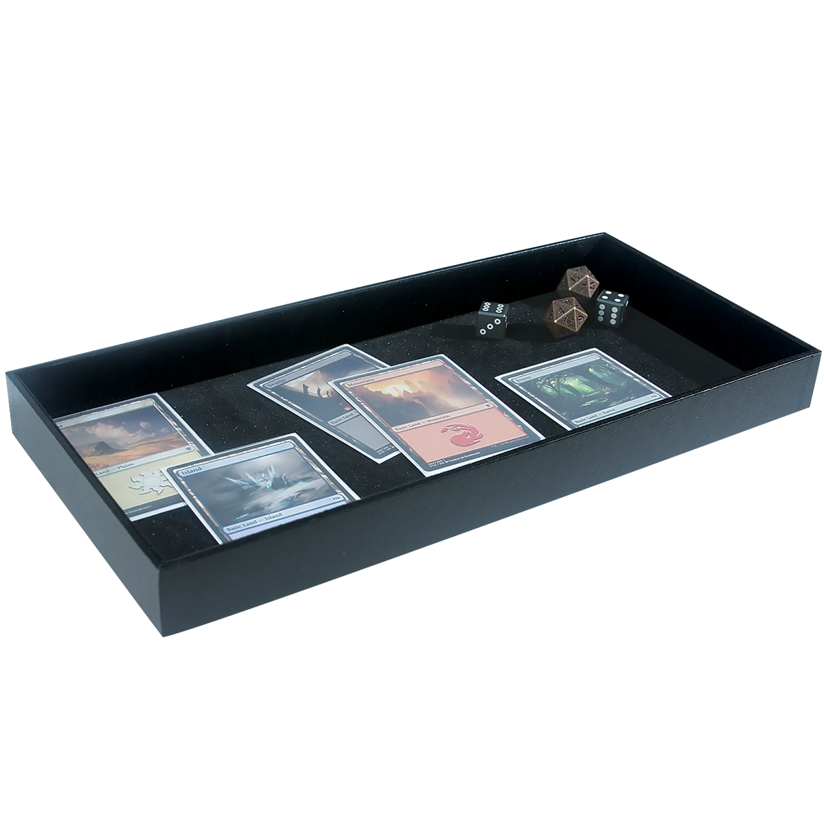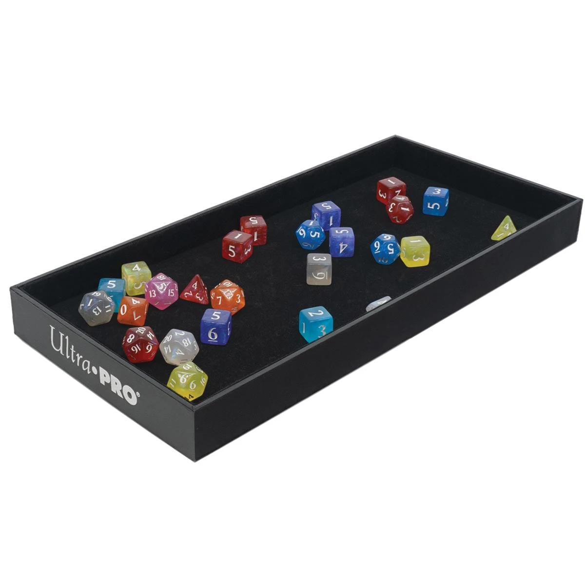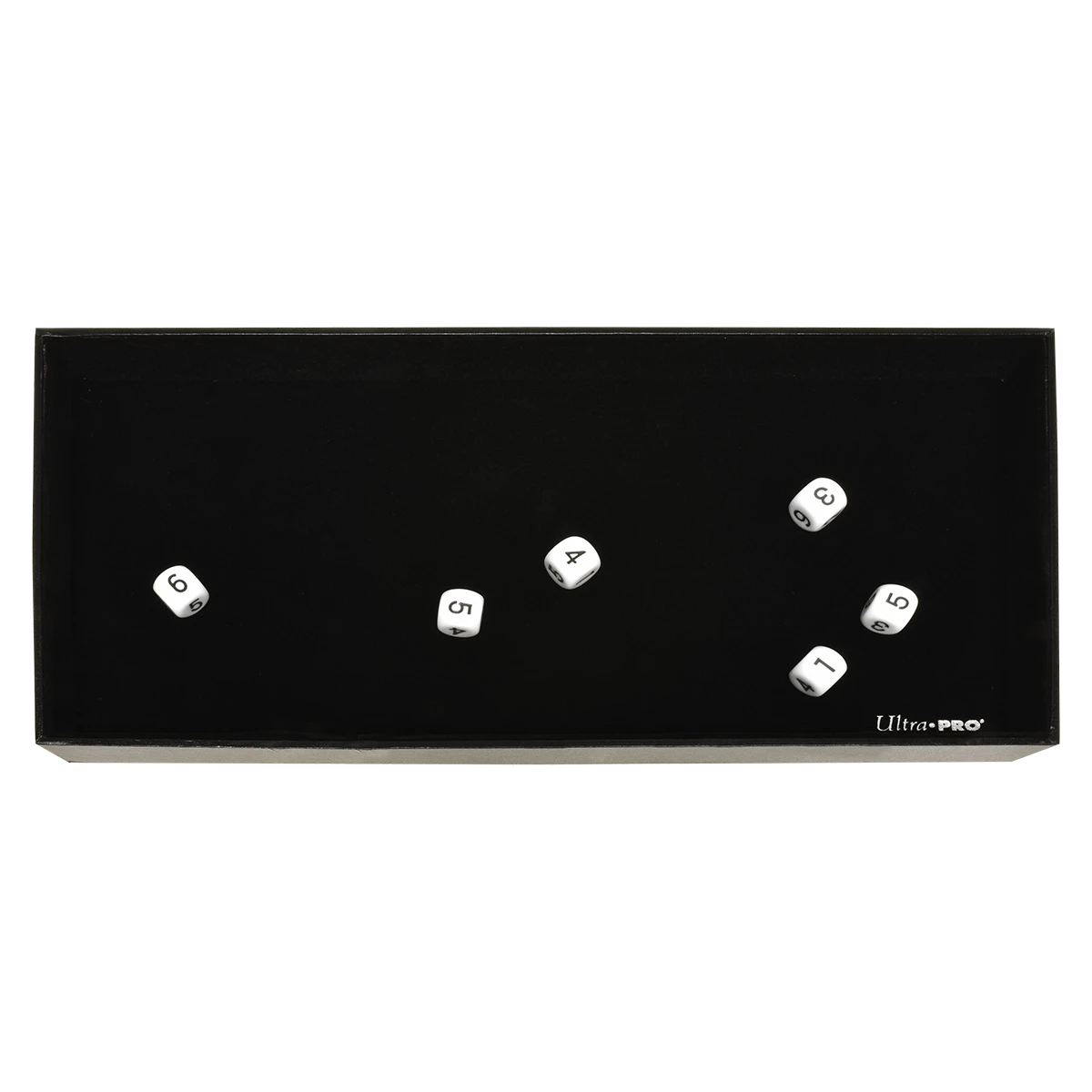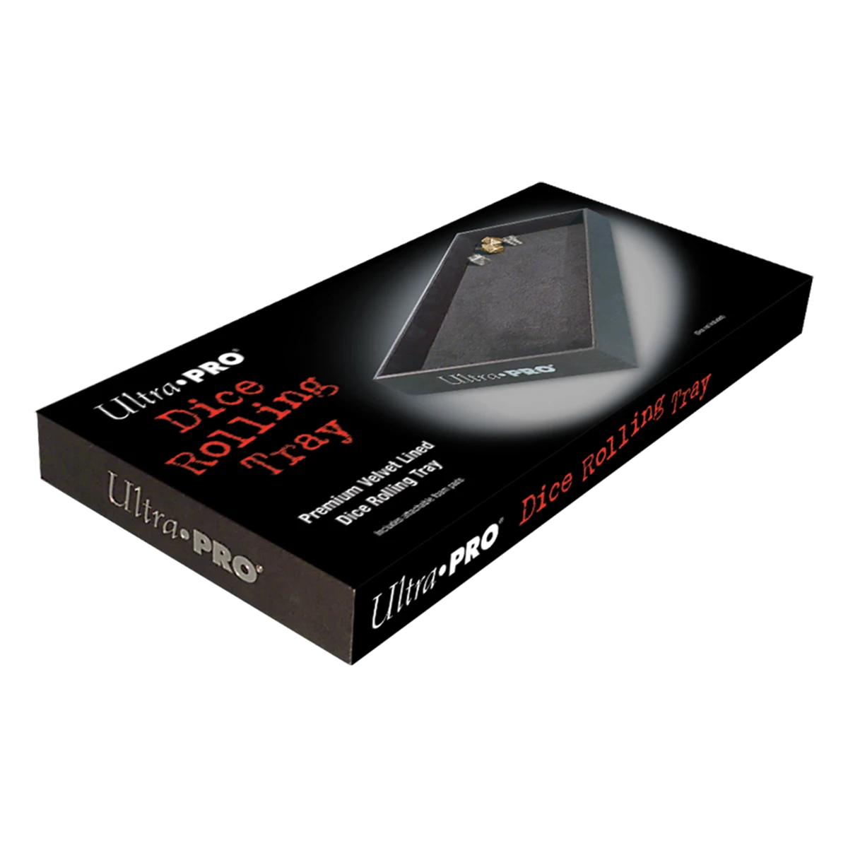 Ultra PRO’s Dice Rolling Trays provide a safe and aesthetic space for rolling dice. Measuring approximately 13.5 in. x 6.5 in. with a one-inch wall, not only does this Dice Rolling Tray protect fragile glass or wood tabletops, but also provides a rollable surface when gaming on carpet, on public transportation, or even on the beach! The velvet inner lining provides a smooth and satisfying dice rolling experience. The perfect partner for Ultra PRO’s Heavy Metal Dice!