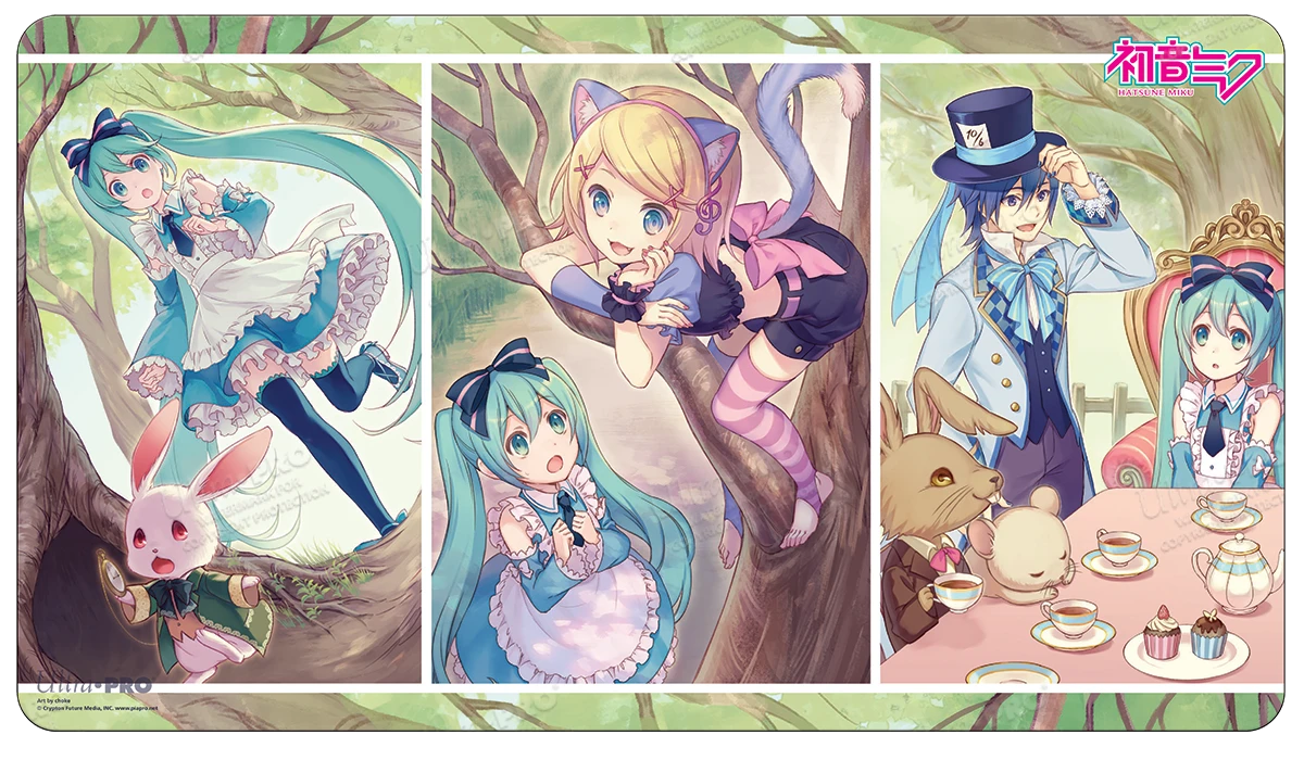 Ultra PRO’s Playmats bring Hatsune Miku Digital Dreamland Woodland Wonderland from the stage to the game table! Enjoy the limelight with popular Hatsune Miku artwork. Made with a soft fabric top to reduce damage to cards during play and a non-slip rubber backing to keep the playmat from shifting during use, playmats enhance the gameplay experience. With dimensions of approximately 24 in. x 13.5 in., a playmat also makes an excellent oversize mousepad for home or office.
