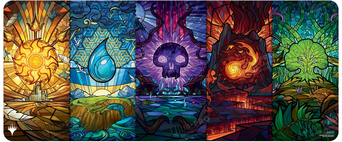 Table Playmats for Magic: The Gathering Dominaria United provide a soft fabric play surface which helps protect cards during gameplay. The non-slip rubber backing helps keep the Table Playmat from shifting during use.