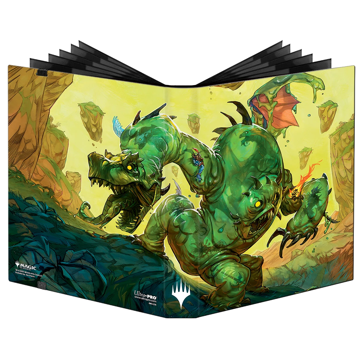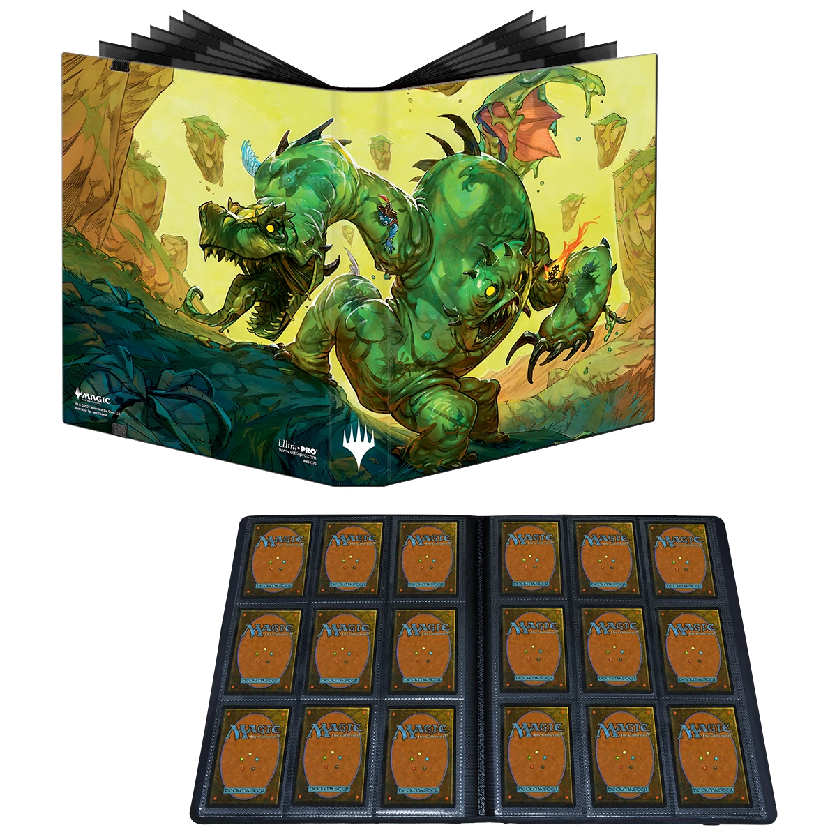 The PRO-Binder for Magic: The Gathering features a vibrant, full-art cover featuring Mimeoplasm by Ivan Shavrin, and elastic strap closure. Side-loading pockets and low-friction material help keep cards in place. Up to 360 cards can be stored safely in archival-safe, acid-free, non-PVC pages.