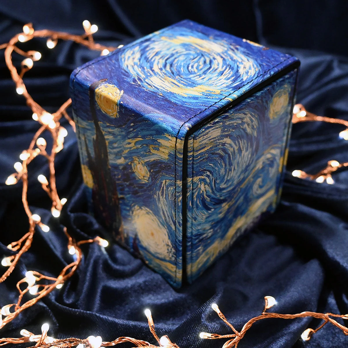 It’s not just a deck box, it’s a masterpiece! These beautifully printed Alcove Flip Deck Boxes feature fine works of art, a super-strong magnetic closure, and hold 100+ standard-sized cards. This deck box features a high-quality, all-over print of the iconic Starry Night painting by Vincent Van Gogh.