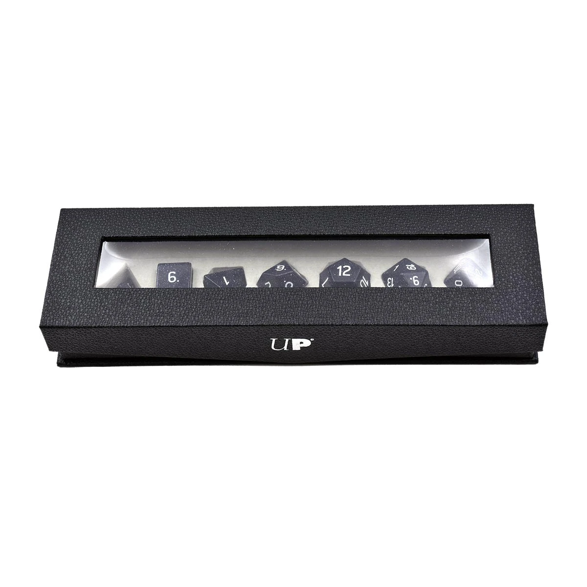 To help protect your treasures each 7-die set comes in a sturdy storage case and includes the following polyhedral dice (D4, D6, D8, D10, D12, D20, and a Percentile Die)