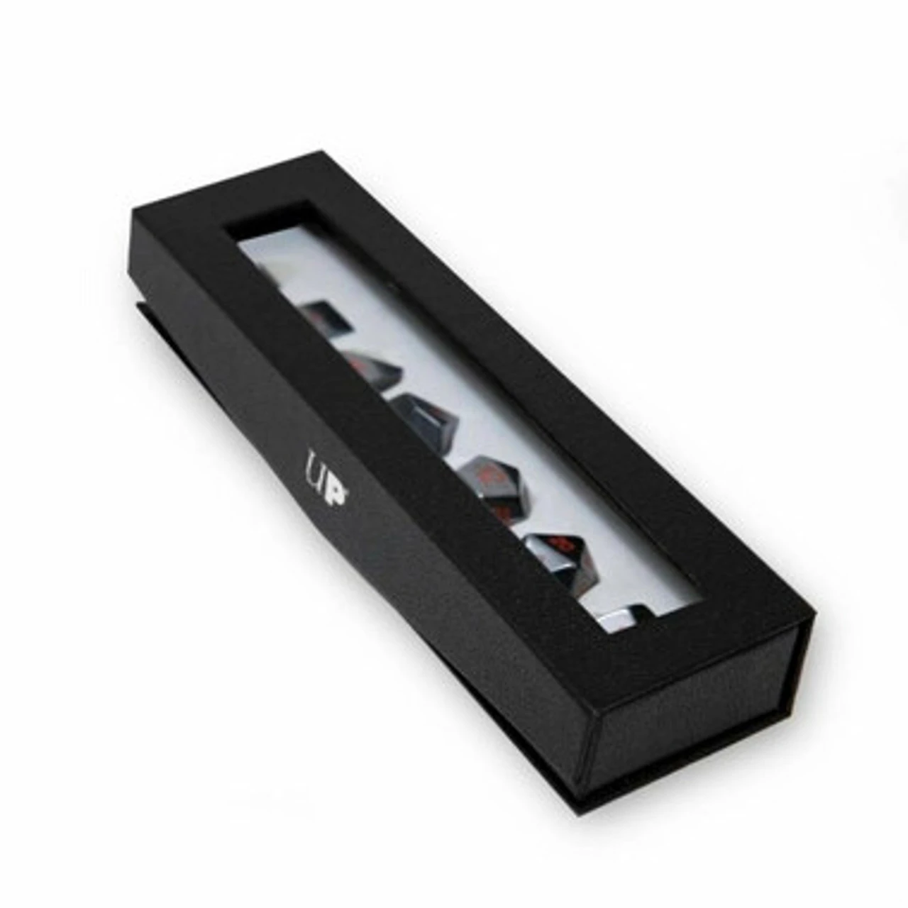 To help protect your treasures, each 7-die set comes in a sturdy storage case and includes the following polyhedral dice (D4, D6, D8, D10, D12, D20, and a Percentile Die)