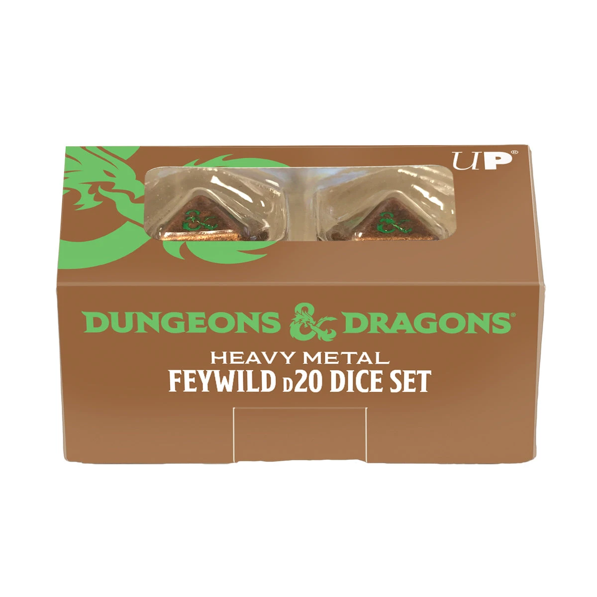 Roll with advantage and ward off enemies on your next adventure with the official Dungeons & Dragons Heavy Metal Feywild Copper and Green D20 Dice Set! Made from a heavy, zinc alloy material, rolling these dice will send a rumble through the realm! The set includes two 20-sided dice featuring the iconic Dungeons & Dragons logo in place of the number 20.