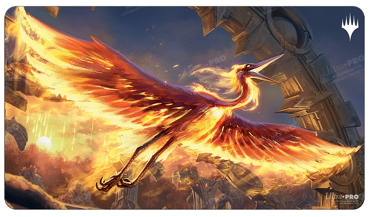 Ultra PRO’s Playmats feature exclusive crops of popular Magic: The Gathering artwork, Sunstreak Phoenix. Made with a soft fabric top to reduce damage to cards during play and a non-slip rubber backing to keep the playmat from shifting during use, playmats enhance the gameplay experience. With dimensions of approximately 24 in. x 13.5 in., a playmat also makes an excellent oversize mousepad for home or office.