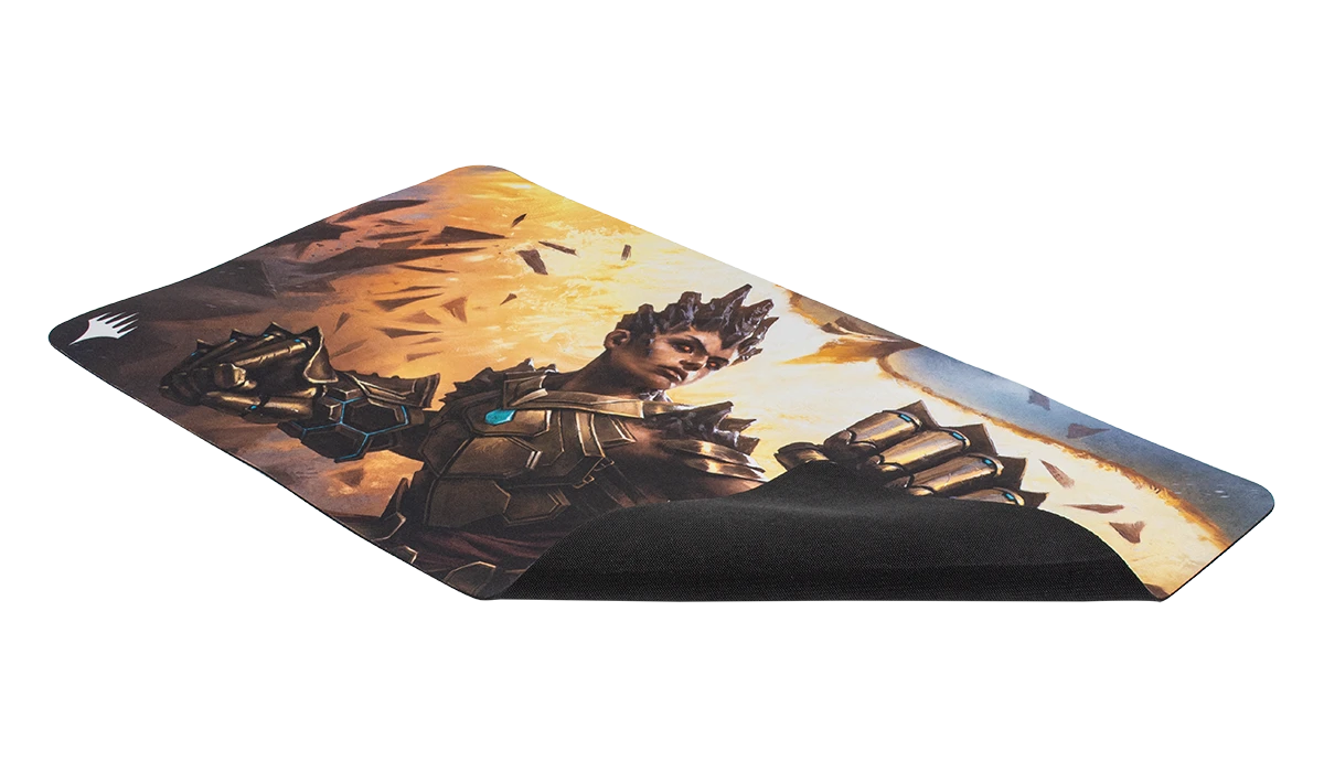 Playmats feature popular Magic: The Gathering artwork. Made with a soft fabric top to reduce damage to cards during play and a non-slip rubber backing to keep the playmat from shifting during use, playmats enhance the gameplay experience. With dimensions of approximately 24 in. x 13.5 in., a playmat also makes an excellent oversize mousepad for home or office.