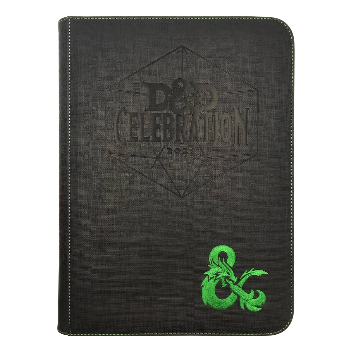 Prepare for adventure with the official Premium Zippered Book & Character Folio for Dungeons & Dragons! This is an updated version of the Premium Zippered Character Folio, redesigned to fit any D&D sourcebook, including your Player’s Handbook, and features D&D’s classic green ampersand logo complimented by green stitching. Inside the premium canvas cover you’ll find a pocket to store notes or maps, 10 wet/dry-erase compatible pages for character sheets and notes, six 9-pocket pages for standard size spell cards, an elastic loop to store a pencil or marker, a D&D branded graph paper notepad, and the added pocket in the back to slide in the back cover of a sourcebook for easy access. All contents are secured by a zipper featuring a custom D&D ampersand pull tab.