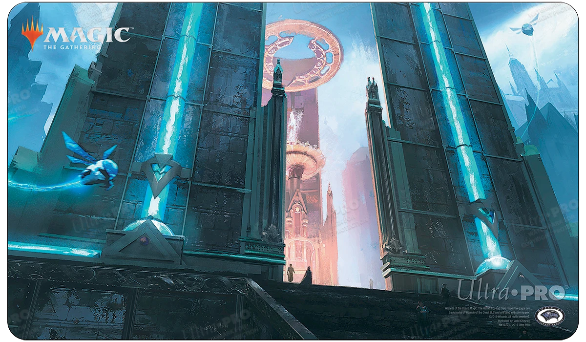 Magic: The Gathering playmat featuring Azorius from Ravnica Allegiance! Made with a premium fabric top to prevent damage to cards during game play. Dimensions are approximately 18″ X 11″. Rubber backing lets the playmat lay flat and prevents the mat from shifting during use.