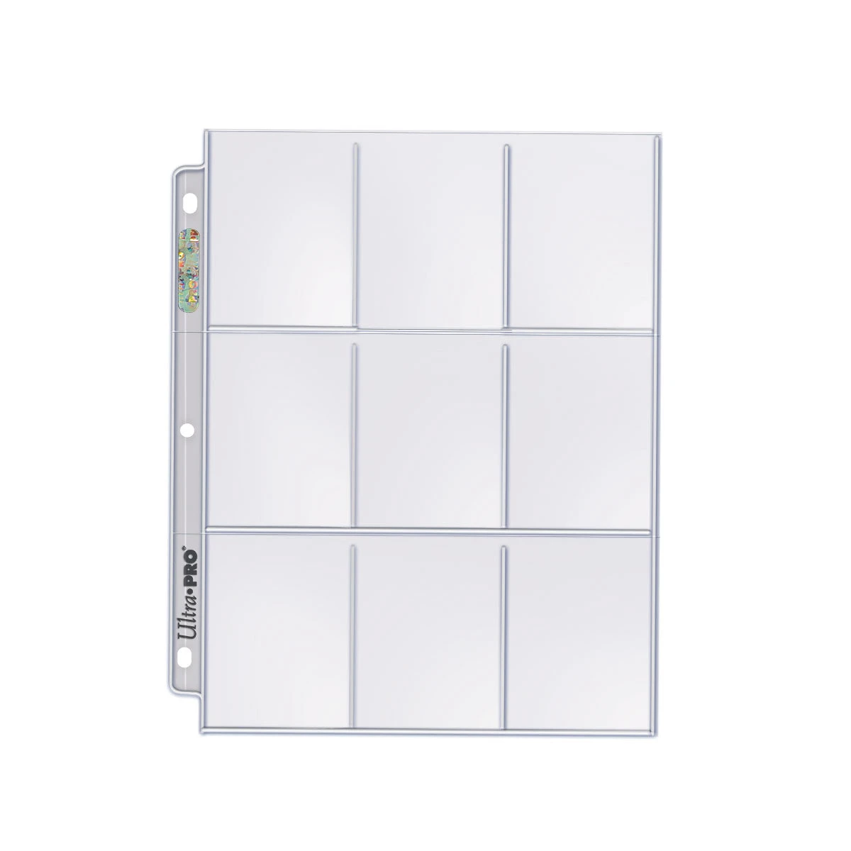 Protect, sort, and store your standard size (2-1/2″ X 3-1/2″) sports and gaming trading cards with Ultra PRO’s Silver Series 18-Pocket Pages with 9 pockets on the front and 9 pockets on the back. Made with clear non-PVC, acid-free, and archival-safe polypropylene film, these toploading 18-pocket pages are an ideal choice for all types of trading card collections, artist sketch cards, sticker cards, and much more. Sealed with solid bar seals, these pages provide superior strength and durability for long lasting use. The spine is sealed with Ultra PRO’s hologram for authenticity and 3-hole punched to fit in most 3-ring albums. Each pack contains 25 individual pages and is made in California, USA.