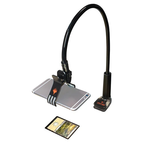 No need to traverse the planes to play Magic with your friends. Play from the comfort of your own home using the Spell Table Camera Stand for Magic: The Gathering! This camera stand is specifically designed to assist players wanting to sling spells through the Spell Table platform. The stand mounts to the edge of your desk or table using an adjustable clamp and features a bendable arm to maneuver your camera or smartphone (sold seperately) exactly where you need it. Most cameras or smartphones mount to the stand using a simple but sturdy clamp mechanism.