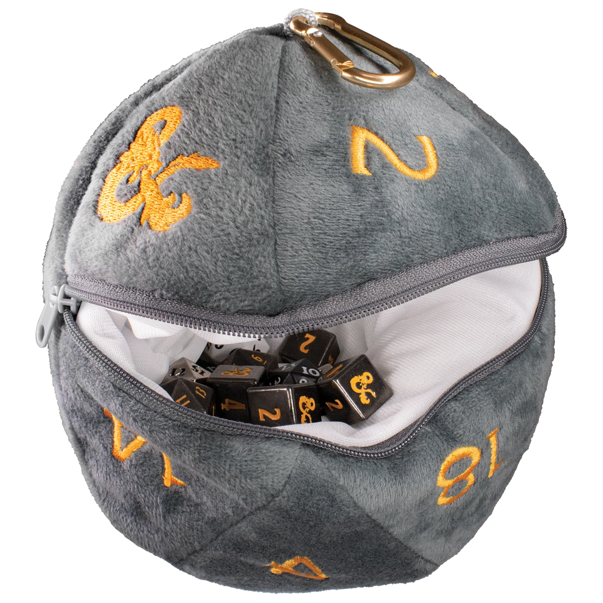 Need +5 to dice hoarding? We’ve got you covered with the new D20 Plush Dice Bag for Dungeons & Dragons! Based on our ever-popular jumbo D20 plush, this dice bag features a zippered center pocket that holds up to 50 dice and a carabiner-style hook that keeps your dice securely at your side. This D20 Plush Dice Bag measures approximately 6.5 inches in diameter, and is the perfect accessory for any D&D adventurer or dice enthusiast!