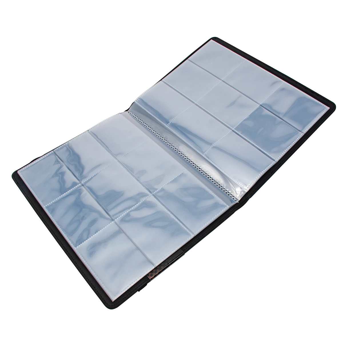 The Sports Premium PRO-Binders are ideal for keeping your sports card collection organized and safe. They feature clear archival-safe 9-pocket pages with side loading pockets to keep cards clean and in place and an elastic strap for secure keeping. The album has 20 pages that hold up to 180 standard-size cards allowing you to easily view the front and back of your cards. This Sports Premium PRO-Binder features an executive style leatherette look in black. The front cover has an all sports player silhouette featuring soccer, baseball, basketball, football, and hockey. Elastic strap that holds the album shut when not in use. (cards not included)