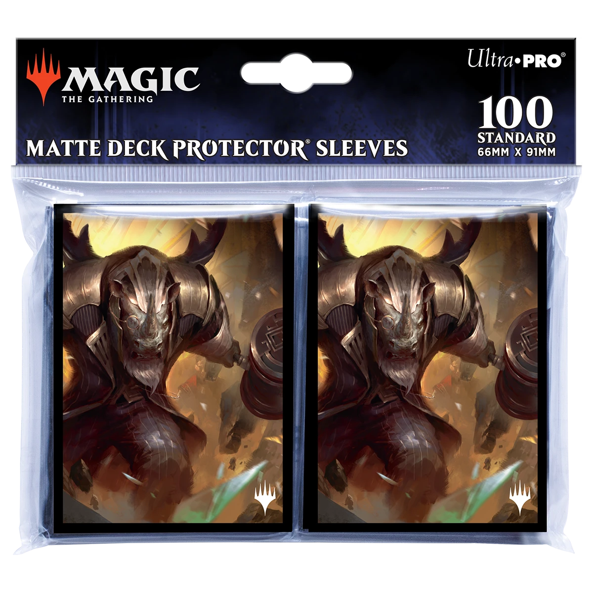 The 100ct Deck Protector® sleeves for Magic: The Gathering feature full-color artwork and are made with our proprietary ChromaFusion Technology™ to prevent peeling. Archival-safe polypropylene materials ensure you can sleeve your cards with confidence. Sized for standard size trading cards measuring 2.5 in. x 3.5 in. The matte finish on the front offers a glare-free, camera ready play experience, while the shiny back brings out the beautiful artwork!