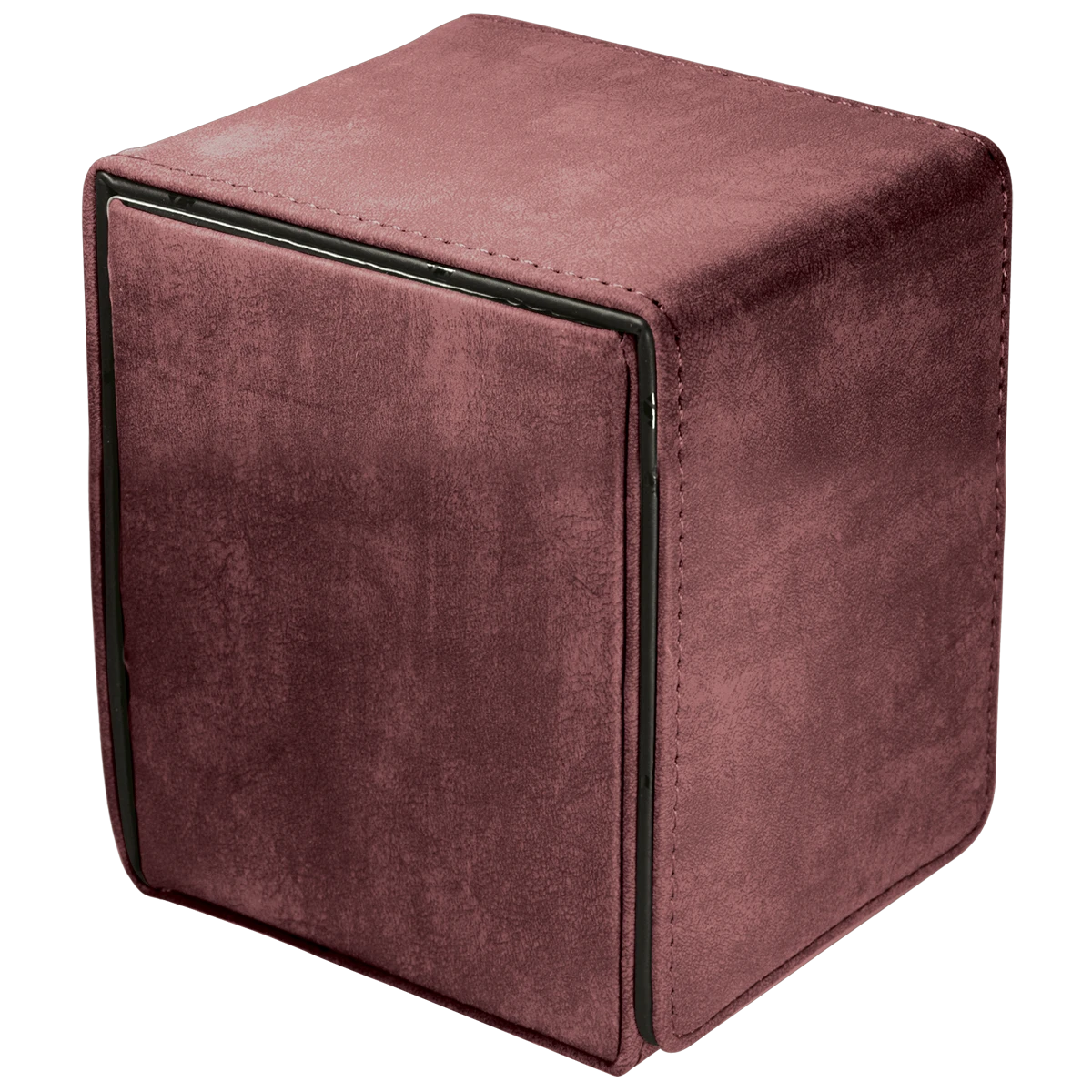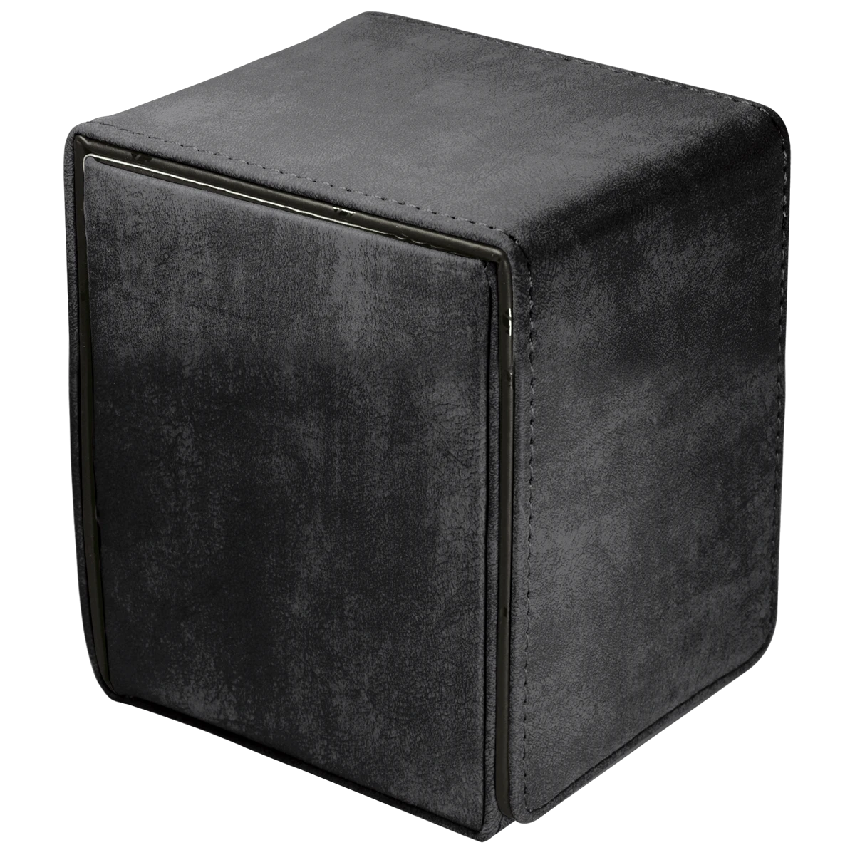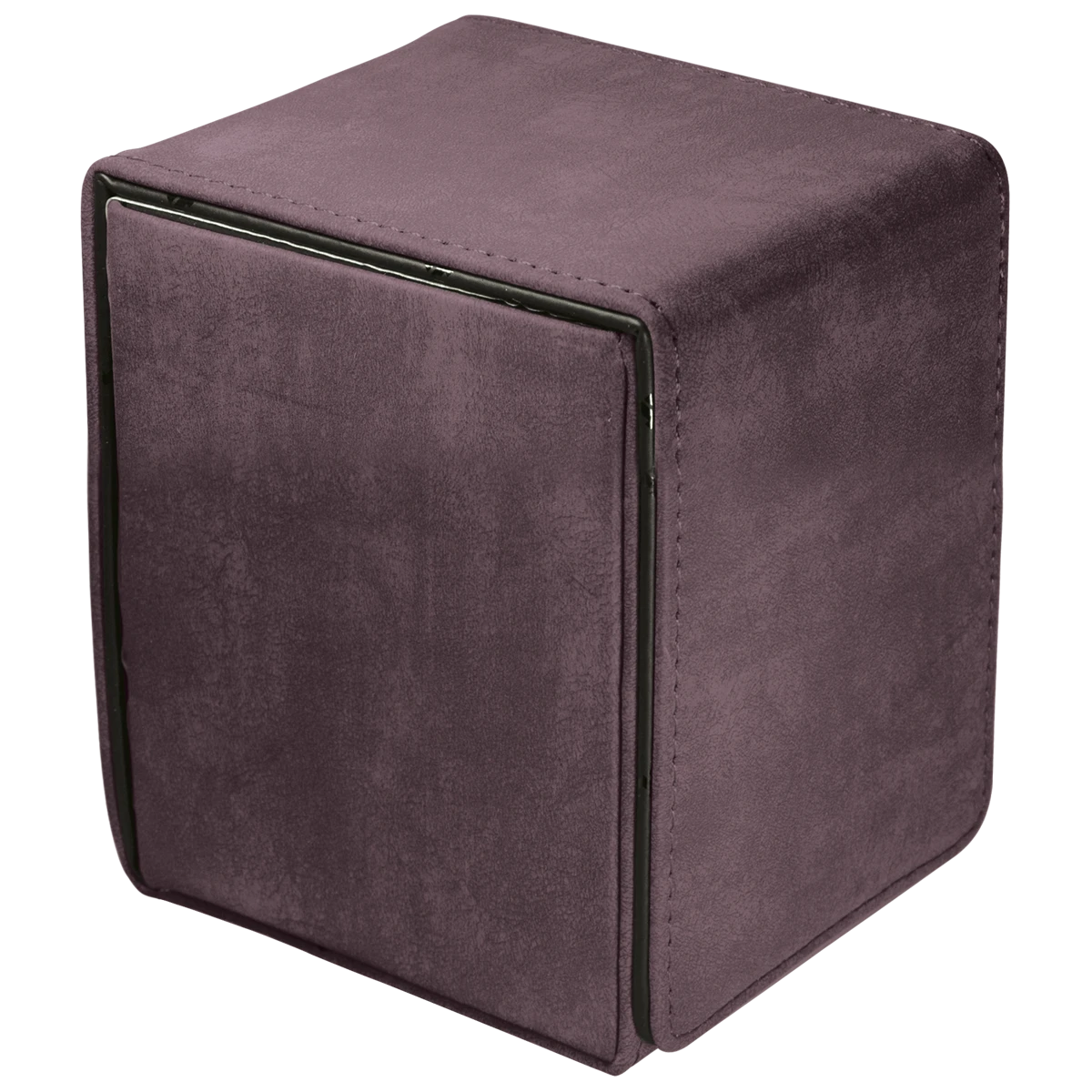 Premium Alcove Flip Box storage cases made with a suede-like material. The Alcove Flip Box can hold up to 100 double sleeved cards with its lid secured by strong magnetic closures utilizing multiple magnets for extra protection. The lid can be undone on both sides of the box to reveal dual thumb notches for easy access to your deck of cards. The Alcove Flip Box is a great storage device for organizing and protecting your collection.