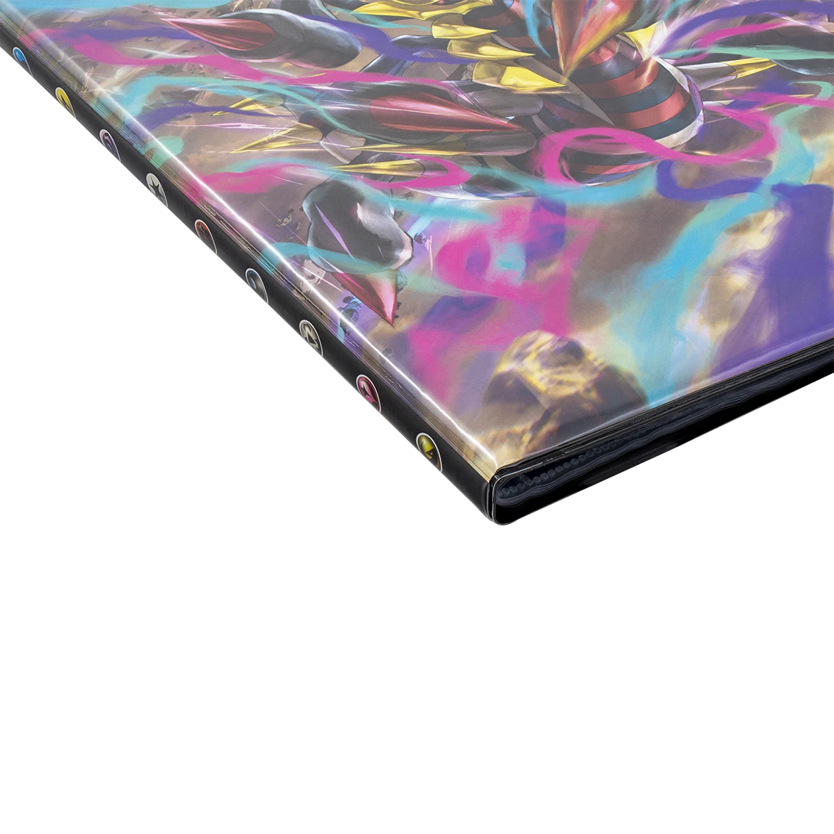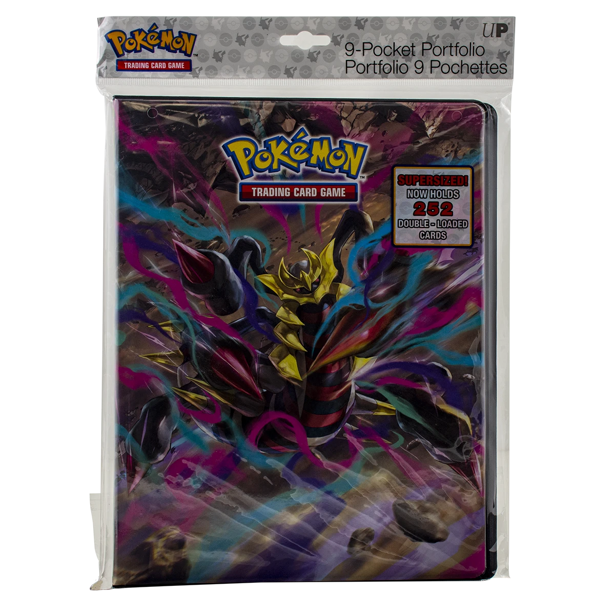 9-Pocket Portfolios for Pokémon feature a vibrant, full-art cover of Giratina and Gardevoir. Each portfolio stores and protects up to 126 standard size cards single-loaded and 252 cards double-loaded in archival-safe polypropylene pages. Made in California, U.S.A.