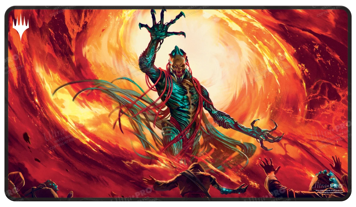 Stitched Playmats feature popular Magic: The Gathering artwork. Made with a soft fabric top to reduce damage to cards during play and a non-slip rubber backing to keep the playmat from shifting during use, playmats enhance the gameplay experience. The stitched edges offer an added premium feel. With dimensions of approximately 24 in. x 13.5 in., a playmat also makes an excellent oversize mousepad for home or office.