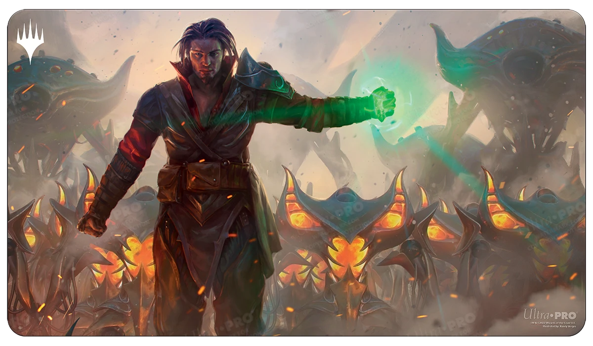 Playmats feature popular Magic: The Gathering artwork. Made with a soft fabric top to reduce damage to cards during play and a non-slip rubber backing to keep the playmat from shifting during use, playmats enhance the gameplay experience. With dimensions of approximately 24 in. x 13.5 in., a playmat also makes an excellent oversize mousepad for home or office.