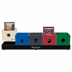The Land Station for Magic: The Gathering has all your basic land sorting and deck-building needs covered! Five satin finish trays are labeled with mana symbols for easy organization and visual recognition. Each tray holds 100 or more cards and sits securely in a solid base. This is a must-have for any MTG drafting or deck-building space, both in-store and at home!