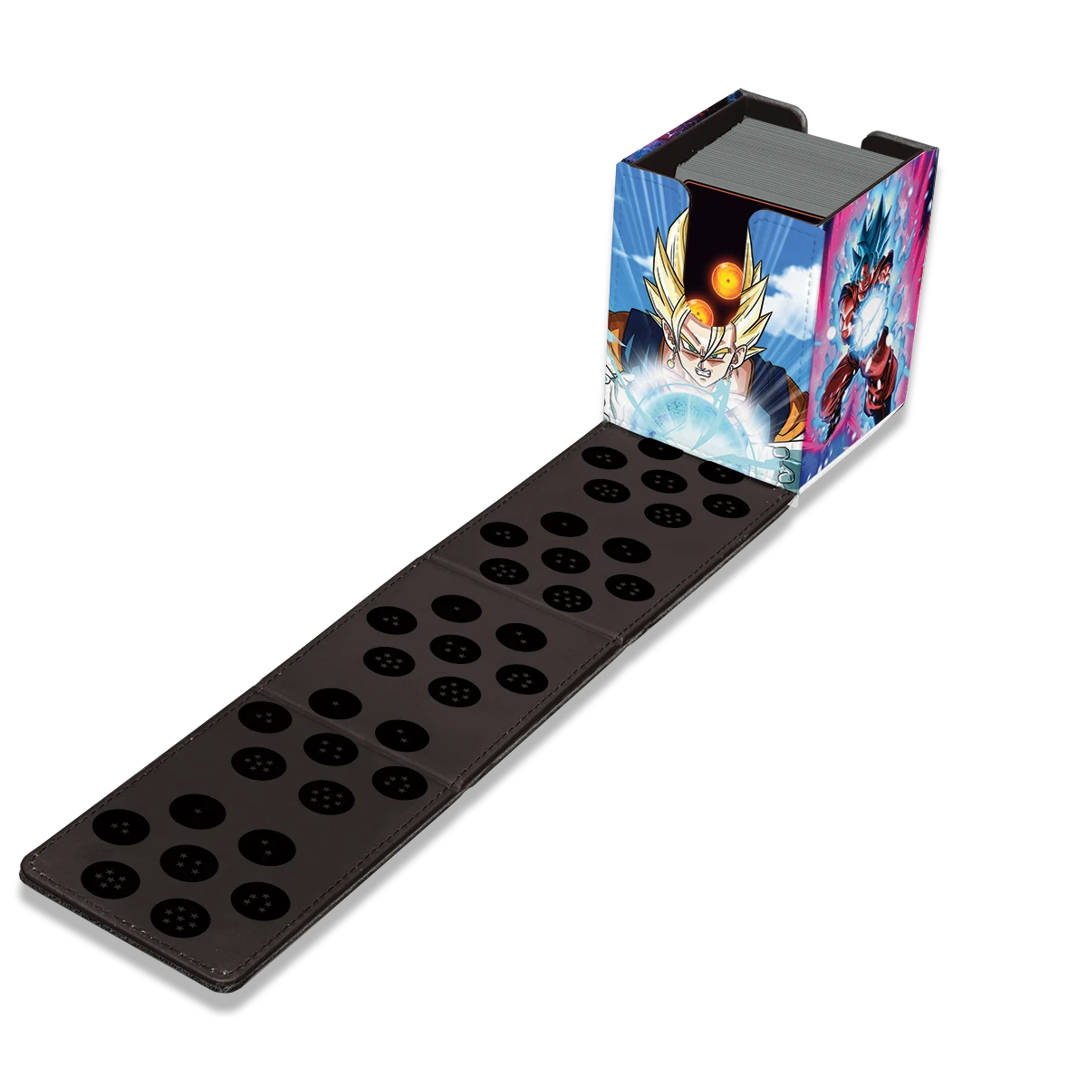 Give your valuable Dragon Ball Super cards the home they deserve with these premium Dragon Ball Super Vegito Alcove Flip Deck Box storage cases made with a matte leatherette finish featuring multiple pieces of art.