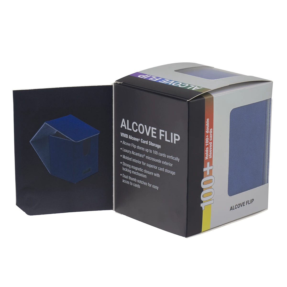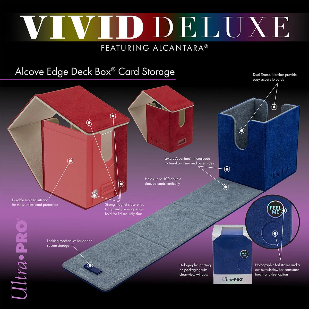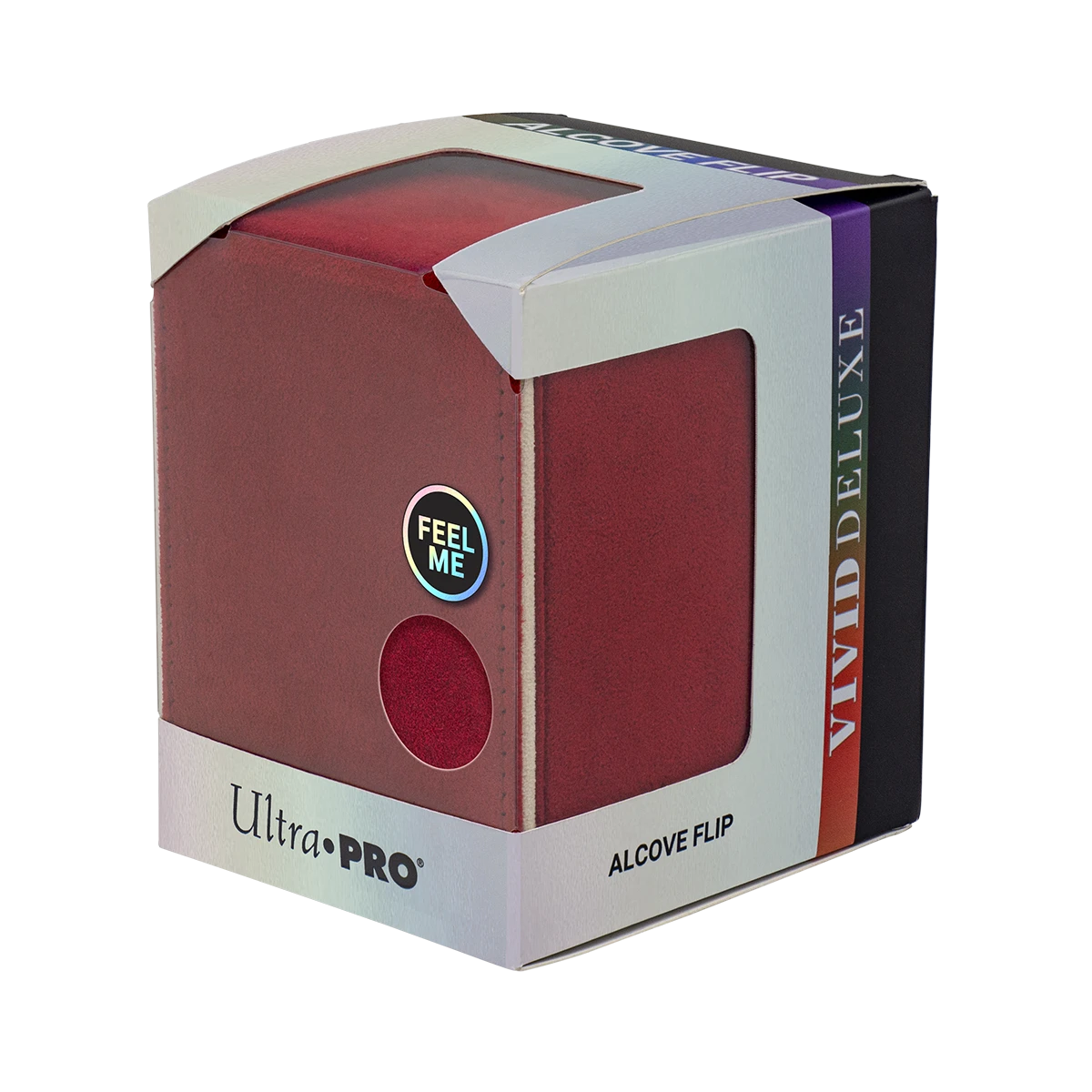 Vivid Deluxe Alcove Flip Deck Boxes feature a luxury Alcantara microsuede material. Store and protect up to 100 standard size trading cards double-sleeved in Ultra PRO Deck Protector® sleeves. This Deck Box® is made with a durable molded interior for maximum card protection. Dual thumb notches provide easy access to your cards when you are ready to play. Multiple magnets and a locking mechanism keep your cards securely stored when not in use. UPgrade your favorite Magic: The Gathering, Pokemon, Flesh and Blood, or standard size TCG deck with the Vivid Premium Alcove Flip!