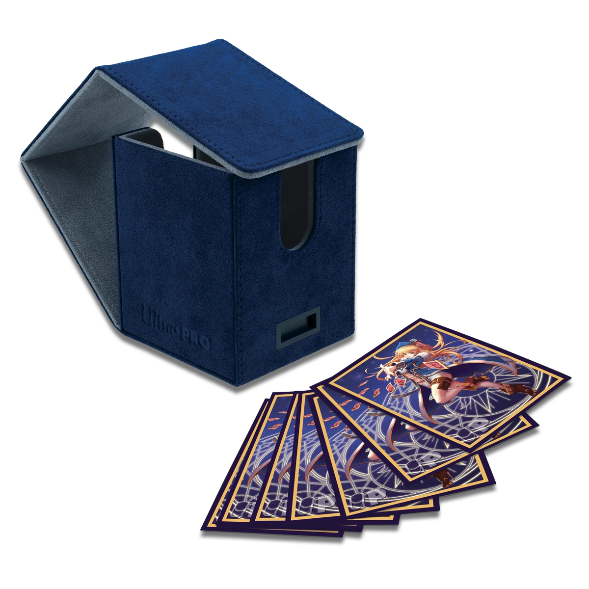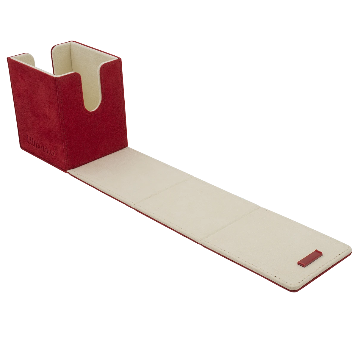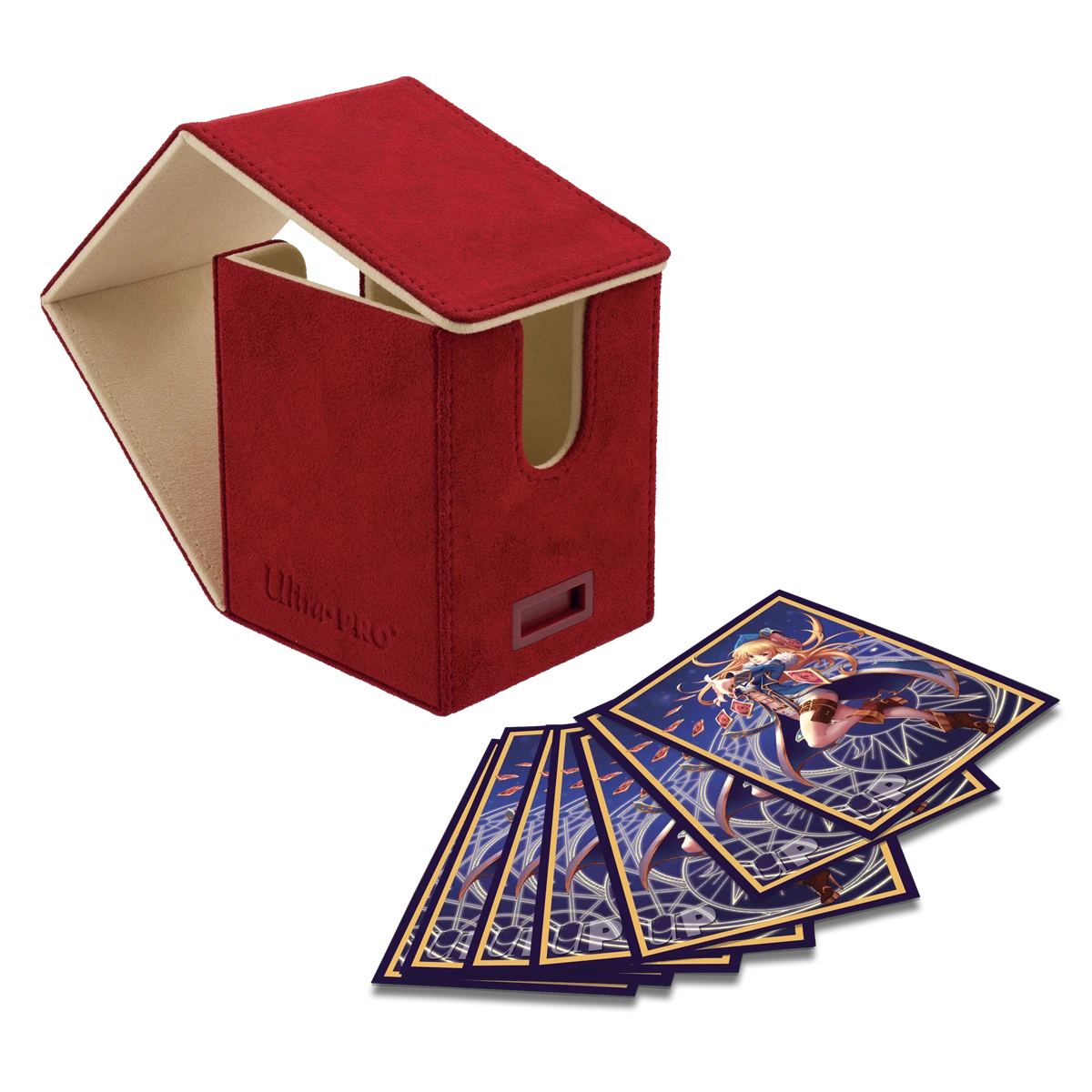 Vivid Deluxe Alcove Flip Deck Boxes feature a luxury Alcantara microsuede material. Store and protect up to 100 standard size trading cards double-sleeved in Ultra PRO Deck Protector® sleeves. This Deck Box® is made with a durable molded interior for maximum card protection. Dual thumb notches provide easy access to your cards when you are ready to play. Multiple magnets and a locking mechanism keep your cards securely stored when not in use. UPgrade your favorite Magic: The Gathering, Pokemon, Flesh and Blood, or standard size TCG deck with the Vivid Premium Alcove Flip!